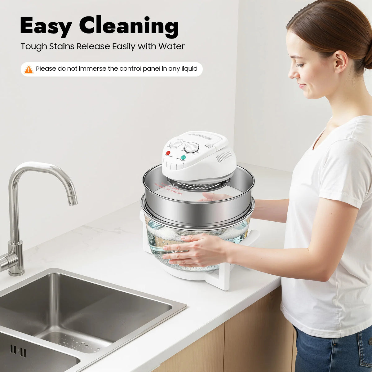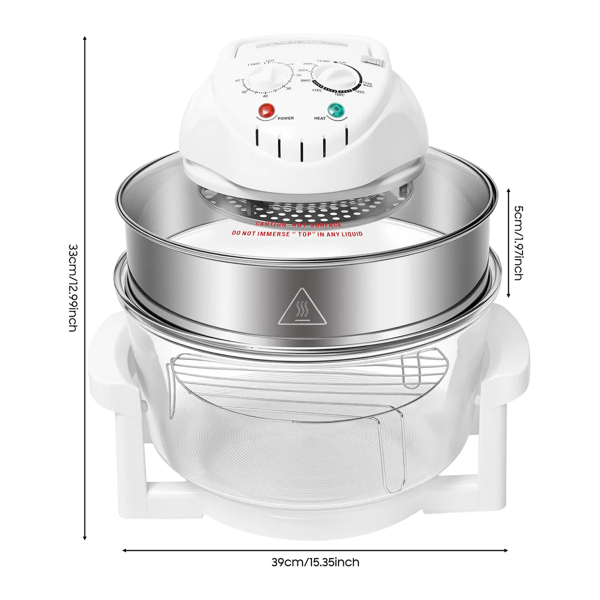 17.96QT Large Air Fryer Oven with Viewing Window, 110V 1200–1400W, 360° Hot Air Circulation, Oil-Free Cooker with Grill Rack for Home Kitchen - WHITE / United States / US